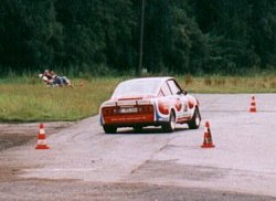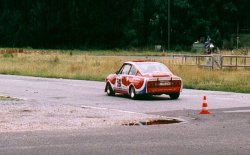 Bilder: Petra Topeit Am 14.07.2002 fand unsere Slalom Premiere statt. Weder Ulli Franke noch der 130RS hatten jemals vorher an einem Slalom teilgenommen. Der erfahrenere Slalom Pilot Rolf Franke konnte das Geschehen, wegen eines Gipsarmes, leider nur vom Fahrbahnrand betrachten. Wie gewohnt sind wir auf eigener Achse nach Neuss angereist. Wir hatten weder Slicks im Gepäck, noch haben wir den Beifahrersitz ausgebaut. Das Getriebe hatte noch die lange Übersetzung vom 500km Rennen und war daher für den Slalom nicht geeignet. Aber das Ganze sollte ja auch nur als Test dienen. Das Ergebnis konnte sich dennoch sehen lassen: Beste Rundenzeit: 1:19 Min (ca. 10 s langsamer als die Tagesbestzeit) und keinen Pylon gerissen. |