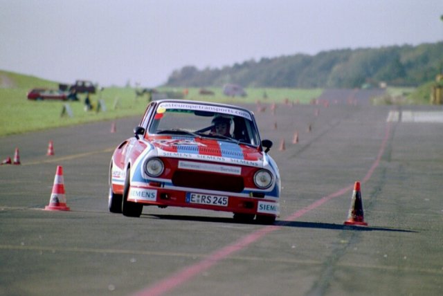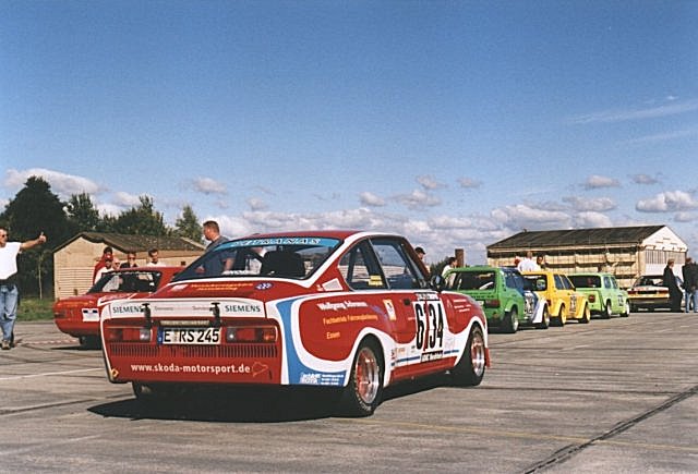 Bilder: Petra Topeit, Stefan Eckhardt Die Youngtimer starteten am 29.09.02 auf dem ehemaligen Bitburger Militärflughafen zum 2. Bitburger ADAC Youngtimer Slalom. Beim "Freien Fahren" am Samstag wurde der Hütchen-Parcours in umgekehrter Richtung befahren damit kein Vorteil für die Wertungsläufe am Sonntag entsteht. Hier hatte Petra Ihr Slalom Debüt. Nach anfänglichem Streuben hat Sie 2 Läufe beim "Freien Fahren" fehlerfrei absolvieren können. In unserer Klasse bis 1300 ccm belegten wir am Sonntag Platz 5 und 6. Nach wie vor fehlten hier ca. 7 sec. auf die vor uns liegenden Alfa Sud. Leider hat sich Ulli beim 2. Lauf mit "kalten" Slicks gedreht und damit wertvolle Sekunden verloren. Ansonsten wäre sicher noch etwas mehr drin gewesen. Dennoch konnten wir bis auf Platz 43 (von 76 Teilnehmern) in der Slalom-Gesamtwertung vordringen. In der Jahreswertung der Youngtimertrophy liegen wir zur Zeit auf den Gesamtplätzen 113 bzw. 130. (von 204 Teilnehmern) Besonders erwähnen möchten wir noch die Leistung von Uwe Pfaar, der sein völlig slalomuntaugliches "Dickschiff" Daimler W123 Coupé auf den 38.ten Gesamtrang wuchtete. Hierzu herzlichen Glückwunsch vom Skoda-Team !! |