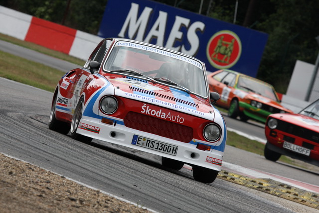 Bilder: Stefan Eckhardt Das Wochenende in Zolder war sehr gut und unser Roll Out hat gut funktioniert. Leider war in der Klasse kein Blumentopf zu gewinnen, weil die dort fahrenden Alfa und Simca einfach zu stark sind. Dafür war aber das Gesamtergebnis umso erfreulicher. Von Platz 31 gestartet, wurden wir nach einer Stunde Rennzeit als 19. (von 44 Teilnehmern) abgewunken. Das war um fünf Plätze besser als im Vorjahr und das bisher beste Ergebnis in Zolder das wir je erreicht haben. Auch die Rundenzeiten waren um eine halbe Sekunde schneller als im Vorjahr und damit die Schnellsten die wir in Zolder nach dem Umbau der Schikanen gefahren haben. Dennoch spiegelt sich das leider nicht im Klassenergebnis wieder. Die erste Trainingssitzung war sehr unbefriedigend, weil wir rundenlang hinter einem langsameren 2 Liter Auto hingen, das auf der Geraden zu schnell zum überholen war und uns trotz blauer Flaggen in den Kurven aufhielt. Hinzu kam, das gegen Ende des 1. Trainings die Bremse nachließ und ein Ausbremsmanöver daher auch nicht möglich war. In der 2. Trainingssitzung lief es dafür deutlich besser. Trotz einsetzenden Regens konnten wir die in der Pause reparierte Bremse voll einsetzen und fuhren dank gutem Grip eine um 2 Sekunden verbesserte Rundenzeit. Alles in Allem ein gelungener Auftritt. Der Skoda hat dank professioneller Hilfe den Unfall im letzten November ohne Nachwirkungen gut überstanden und hat wieder einen viel besser optischen Zustand als vor dem Unfall, weil wir gleichzeitig alle kleinen Schäden und Blessuren mit beseitigt haben. Auf diesem Wege möchten wir nochmals allen Danken, die an der Reparatur des Skoda mitgewirkt habe und ohne die wir den Wiederaufbau nicht geschafft hätten. Auf einer weiteren Seite haben wir schöne Bilder zusammengestellt, die einen kleinen Eindruck über die Fahrerlagerromantik in Zolder wiedergeben. Bitte dazu hier klicken.
