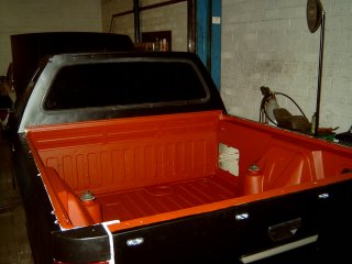 Obwohl wir den Untergrund nur sehr grob vorgearbeitet hatten, machte sich die Folie sehr gut auf dem alten Lack. Das Mattschwarz kaschiert sehr viele Unebenheiten und gibt der Farbgebung ein professionelles Aussehen. Da Folie schneller reißt als Lack, haben wir die Ladefläche mit einer dicken Lackschicht versehen. Dennoch ist die Folie waschstraßenfest und resistent gegen Sonneneinstrahlung.